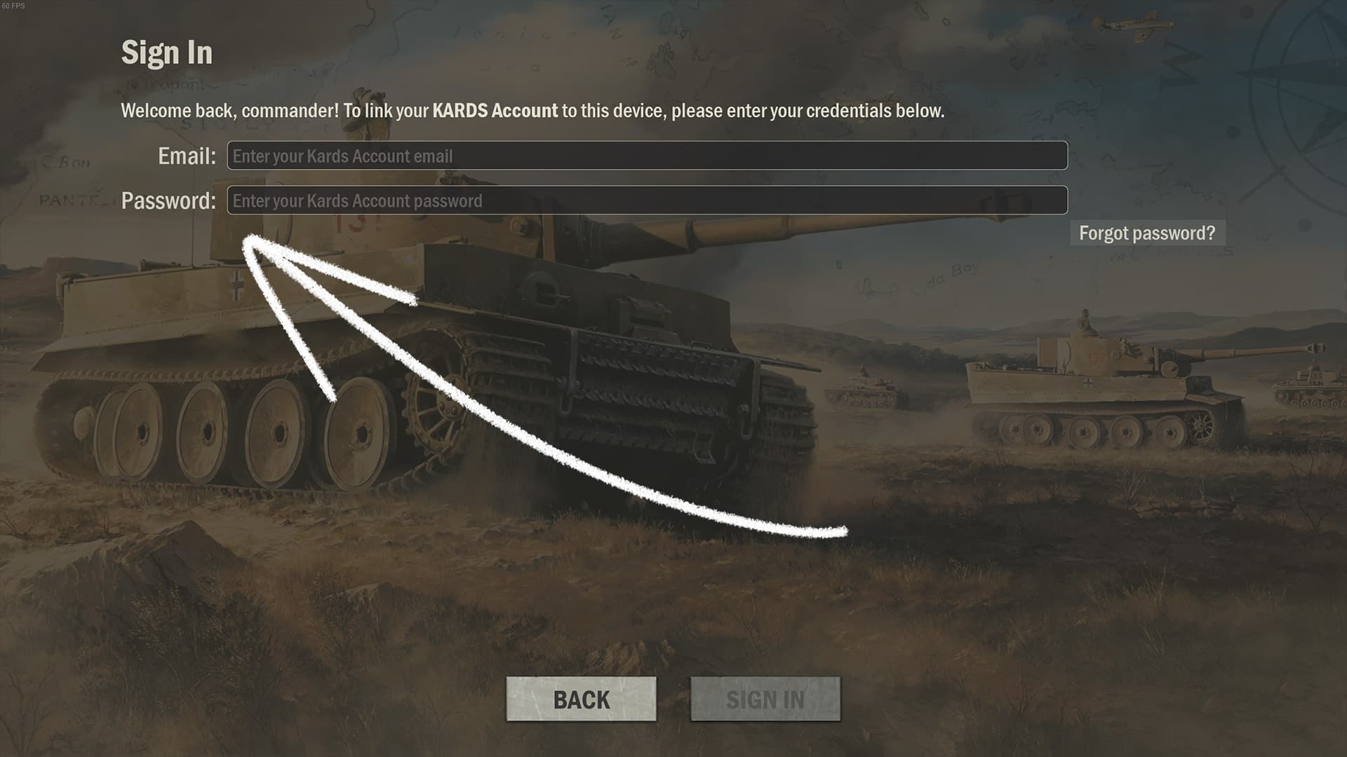 Enter the same email and password you used to create your KARDS Account on PC.