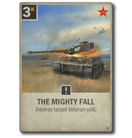 THE MIGHTY FALL is a Soviet Order of Limited rarity. It costs 3 Kredits to play and has the effect "Destroy target Veteran unit".