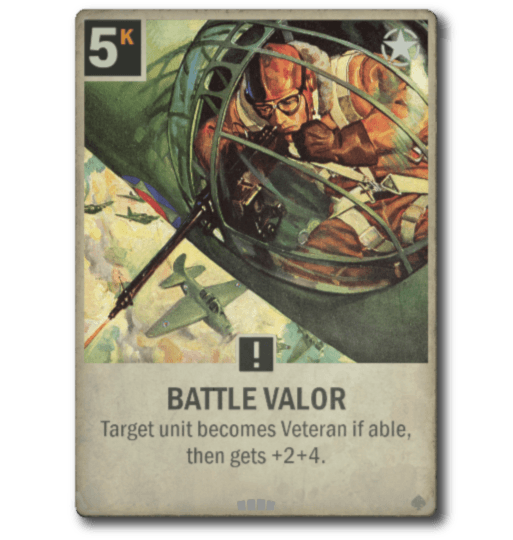 BATTLE VALOR is a Standard US Order that costs 5 Kredits to play. It has the effect that a target unit becomes Veteran if able, then gets +2 +4.
