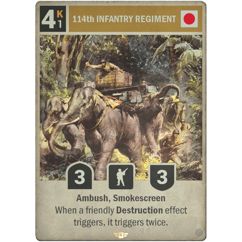 Als neue Elite-Karte dieses Updates ist das japanische 114. Infanterieregiment wirklich eine Macht, mit der man rechnen muss. Schon dessen Hinterhalt- und Vernebelungs-Effekt macht es zu einem starken Gegner auf dem Schlachtfeld, aber dann kommt es mit einem zusätzlichen Effekt!