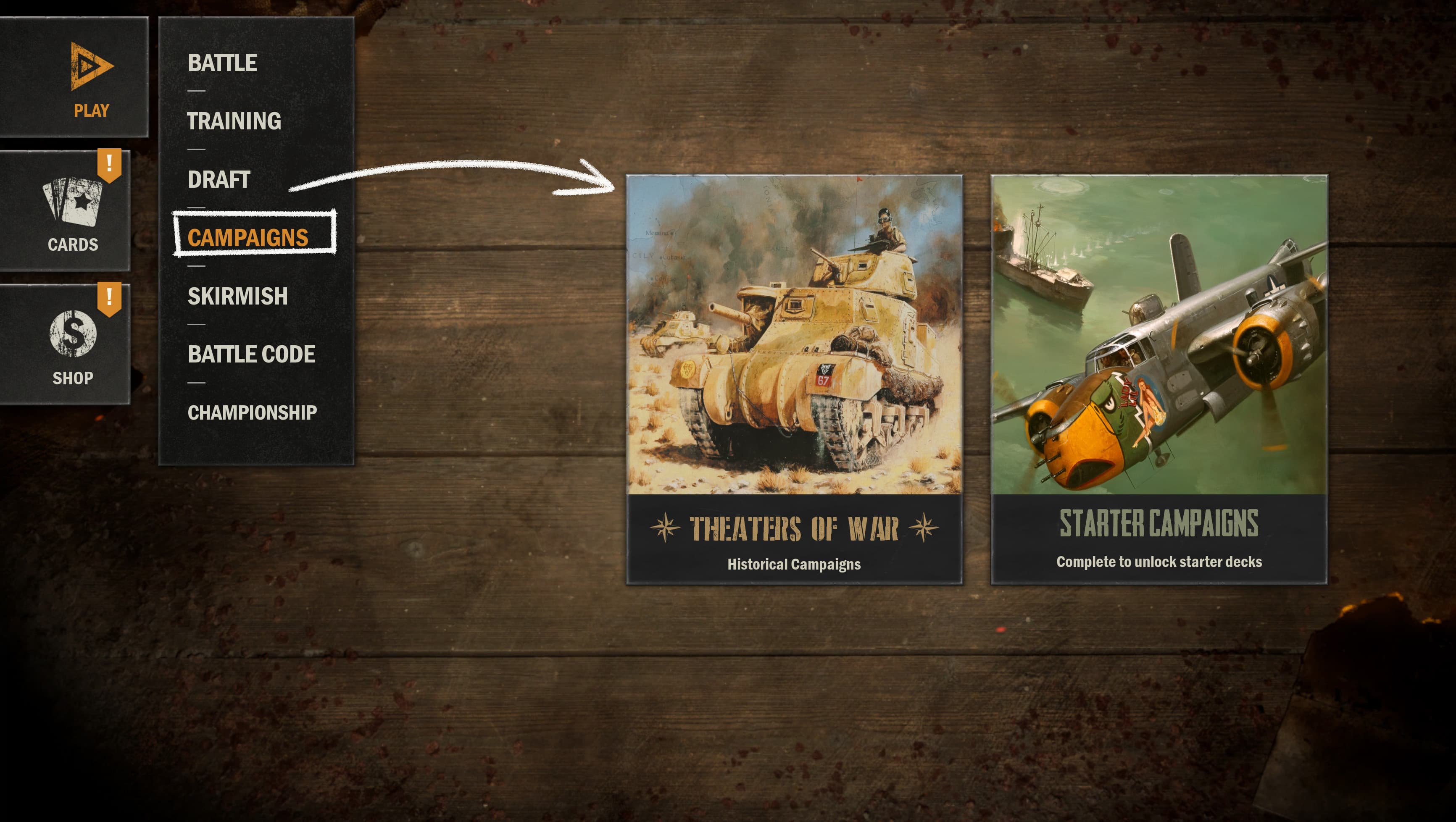 Se puede acceder a las campañas de Teatros de Operaciones desde el menú Jugar, en Campañas. Desbloquea el acceso a las cinco campañas por 148 diamantes.