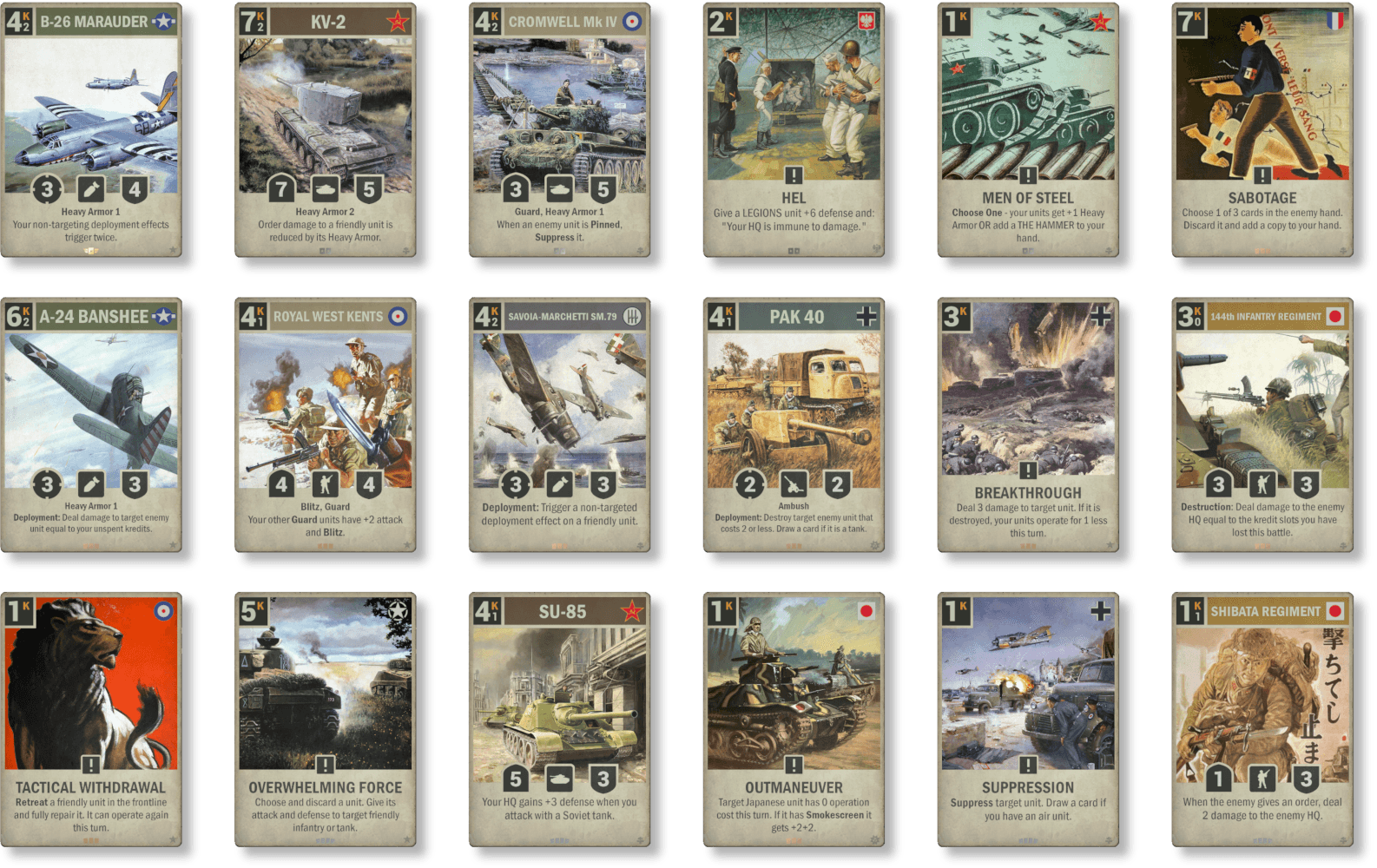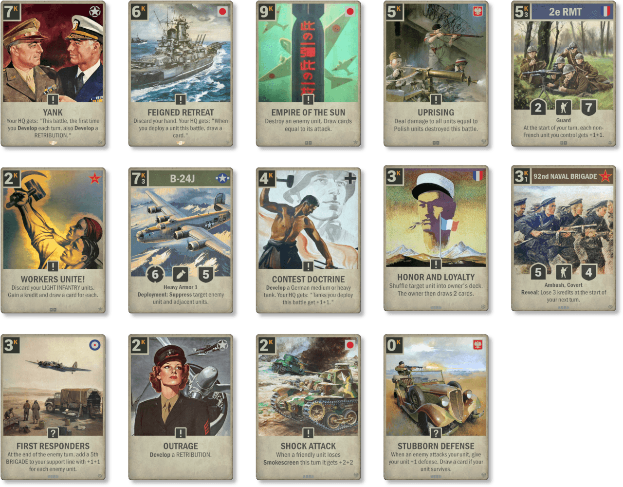 Les changements apportés vont d'ajustements tactiques, comme pour Retraite Tactique, à des modifications plus lourdes comme la nouvelle capacité du KV-2.