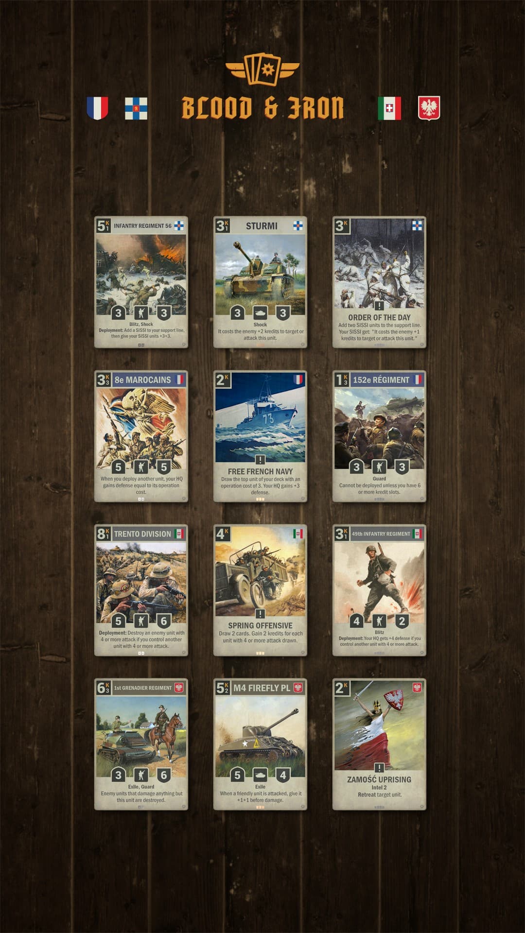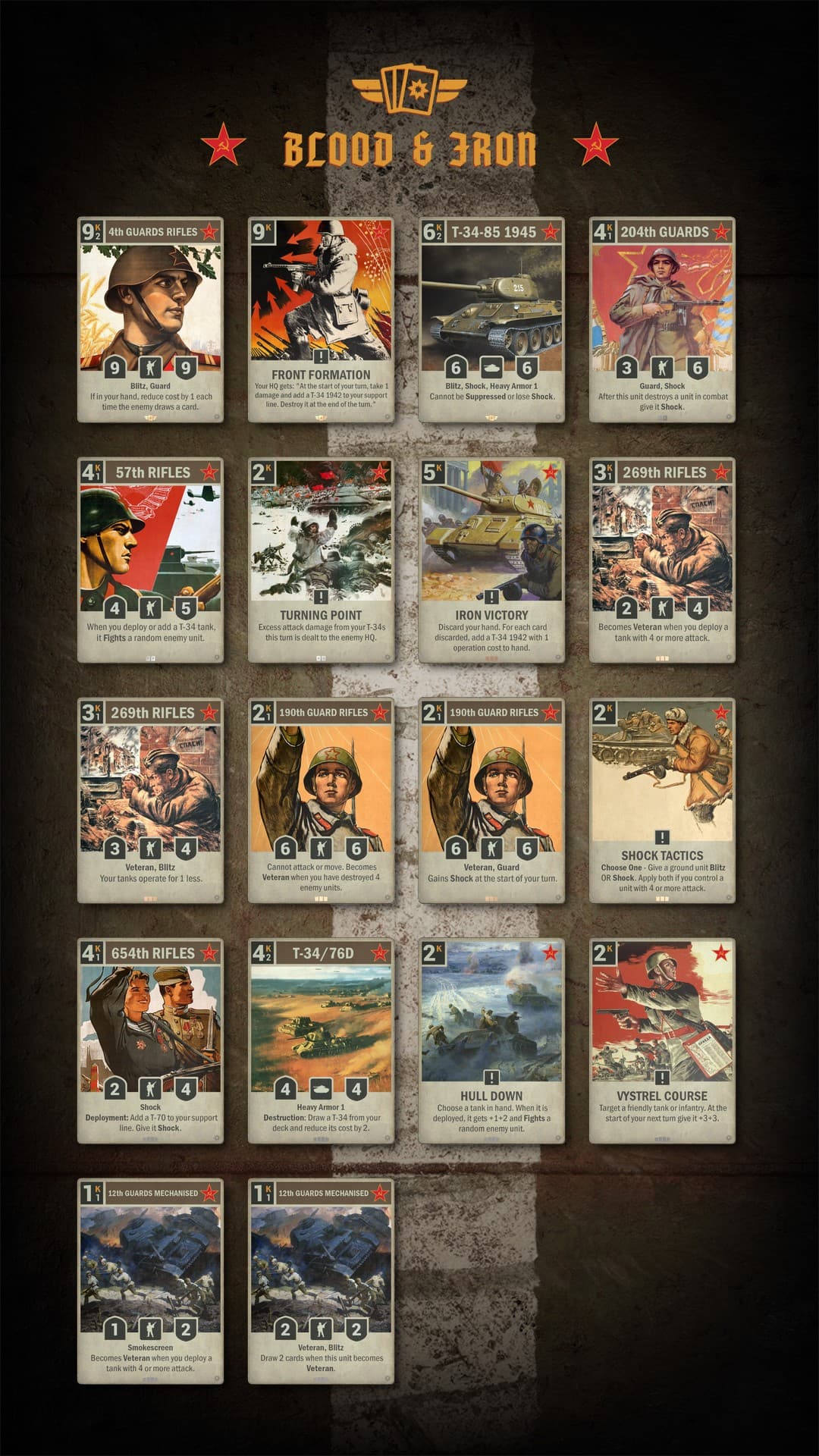 The Soviets harness the power of Shock units, legendary T-34 tanks, and formations that reward bold, aggressive strategies. Combined with Fight mechanics and bonuses for units with attack 4 or higher, the Soviet deck reflects the might of its historical armored forces.