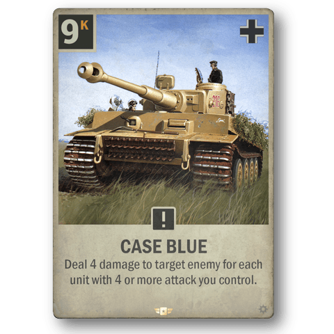 In the theme of armored warfare and tanks, the Germans will get the biggest tank ever built, Maus! That is mouse in English and some think that Germans have no humor! The Maus will have Heavy Armor 3 and a fearsome attack 12. The only thing the Maus has to fear is bridges. Since it was the heaviest tank ever built at 188 tons there were very few bridges it could cross. Luckily there are no bridges in KARDS.