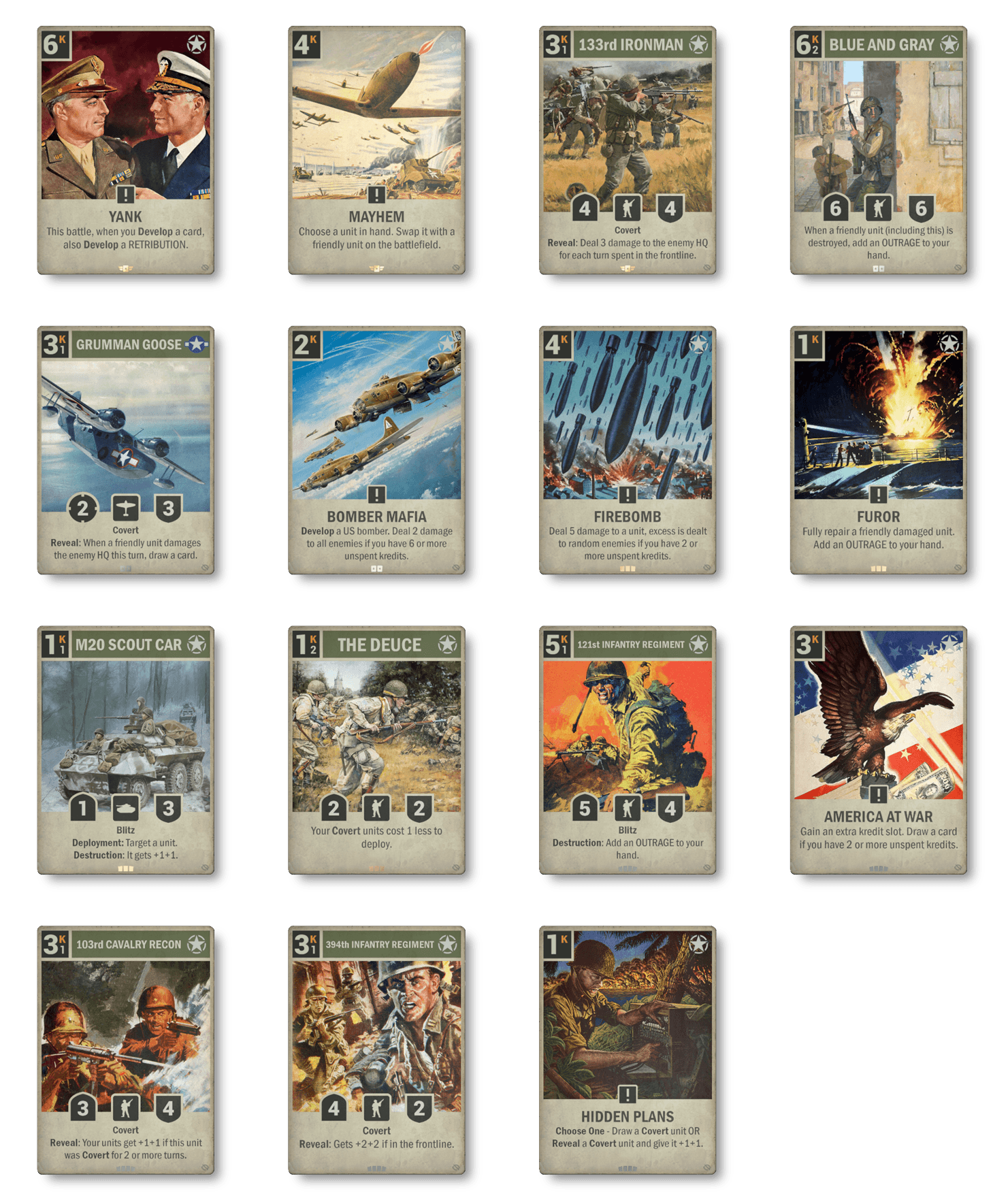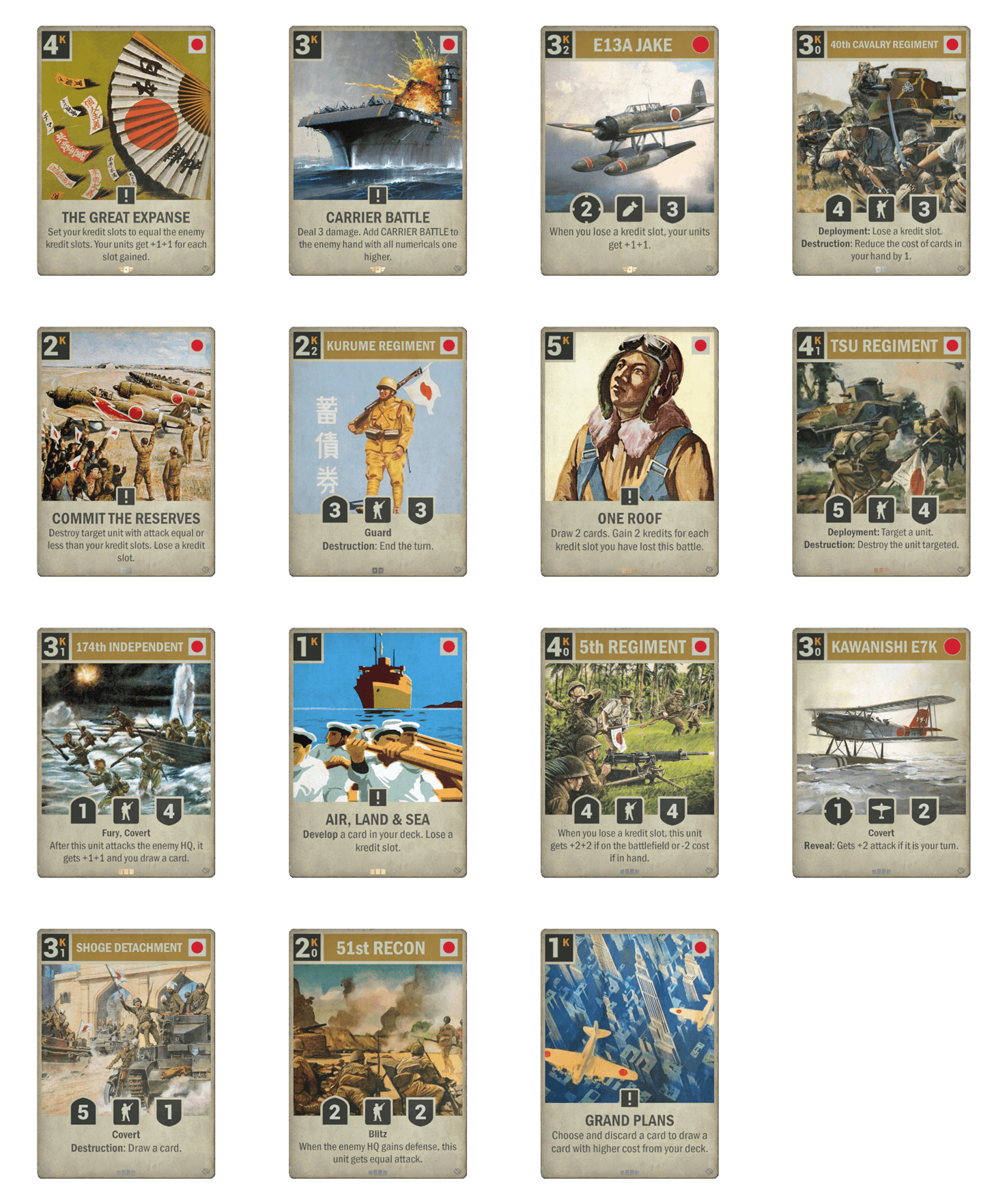 Japan receives a major boost to their strategic arsenal with Covert Operations. Several new cards revolve around sacrificing kredit slot(s) to gain boosts on other fronts in the hope that this exchange will pay off with a victory. This perfectly aligns with Japan's major strategies during WW2. Additionally, we get several thrilling covert cards with this release.
