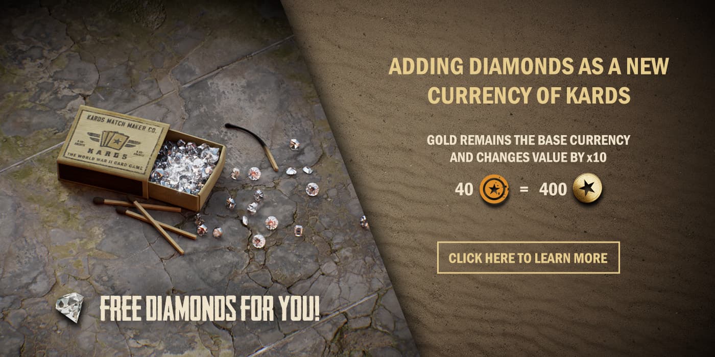 As we are introducing the new premium currency to KARDS, we want to give the community a large “thank you” for valuable discussions, passionate engagement over time, and especially feedback regarding our new currency.