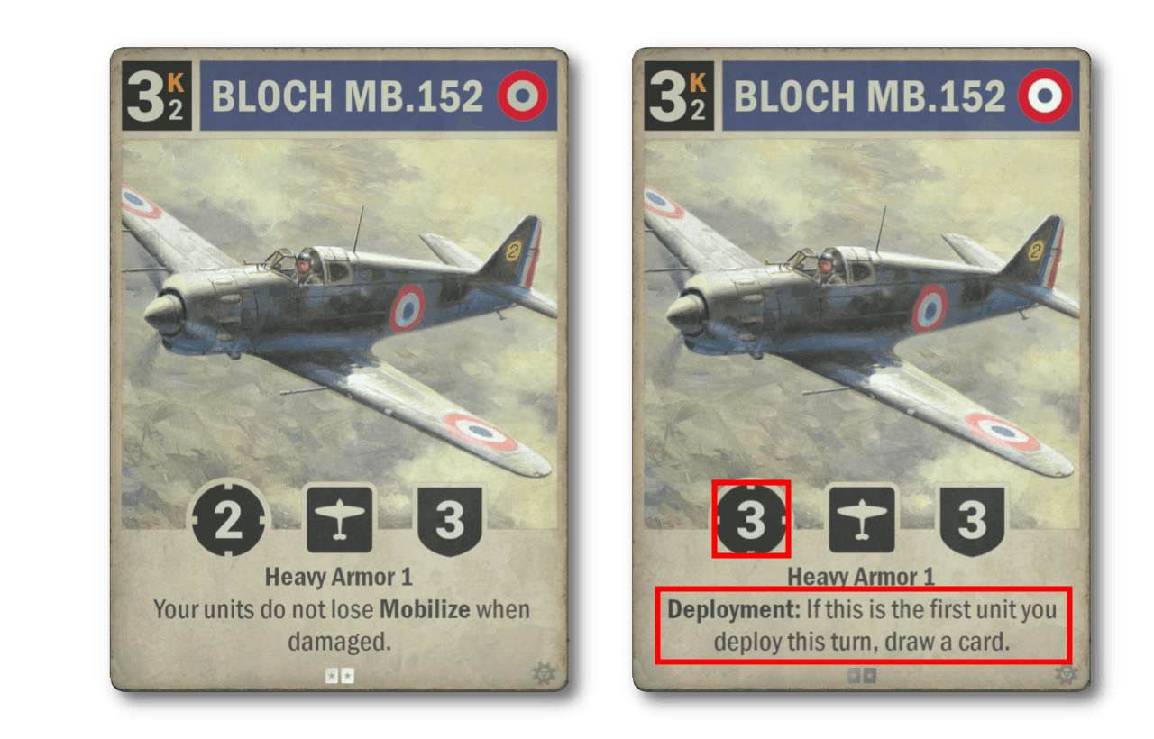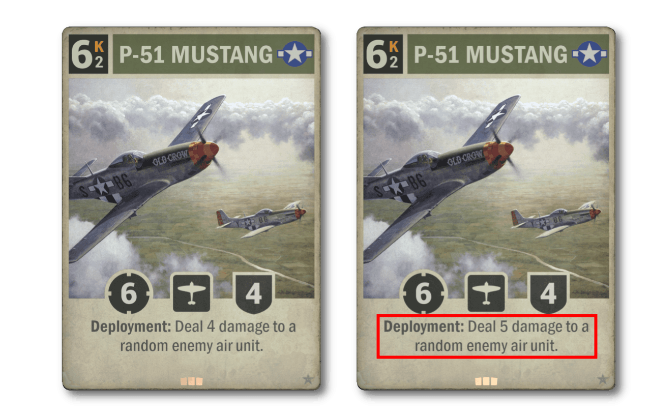 The iconic P-51 Mustang has for a long time rarely found a home outside of draft. It is now regaining its old ability of dealing 5 damage instead of 4. Let’s see if this allows it to range further. The word on the grapevine is that air decks may be seeing a resurgence soon, meaning the P-51 Mustang may be getting into its stride at just the right time.