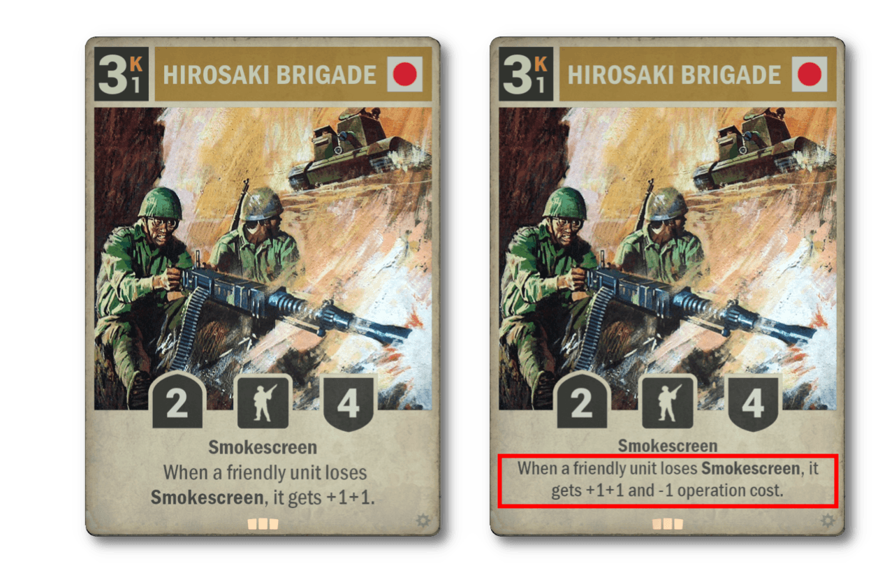 To answer the question above - if Hirosaki is not enough by itself, maybe this little buff can push it over the edge. Now with an operation cost of 0 this little tankette threatens to grow into a formidable threat quicker than you can say ‘Go Type 92 Jyu-Shokosha, go!’ three times fast.