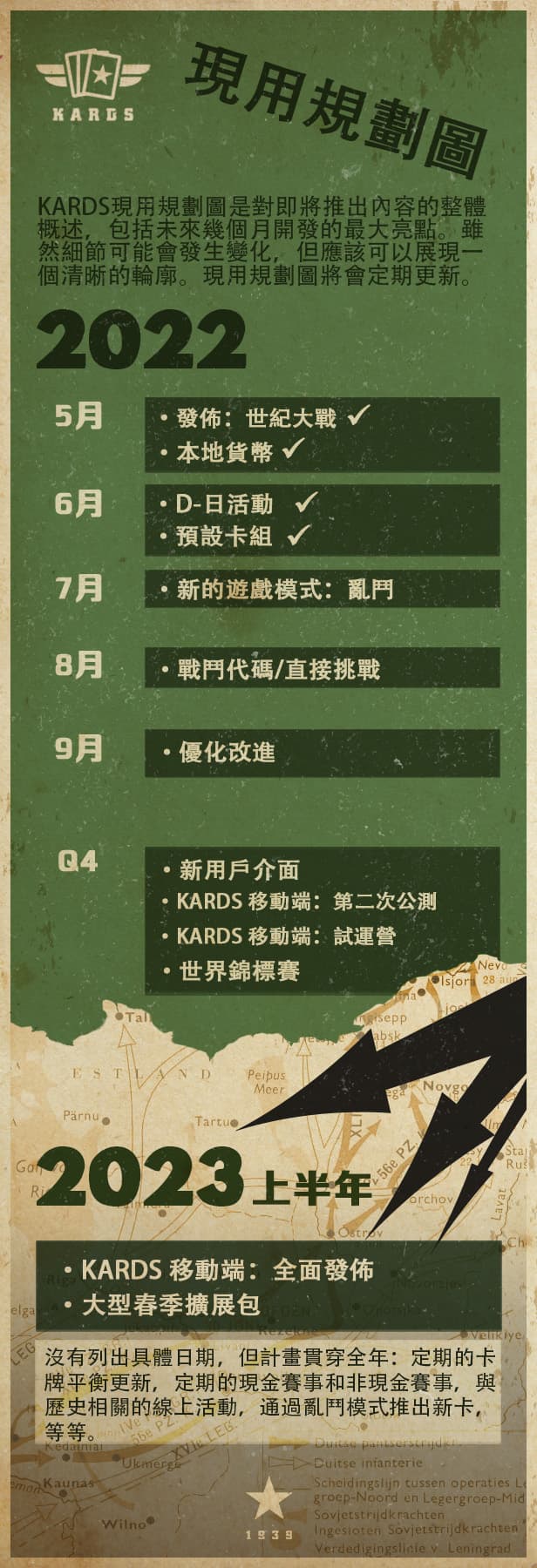 規劃圖是定期更新的對KARDS重要事件和里程碑的整體概述:規劃圖只含最高級別的內容。