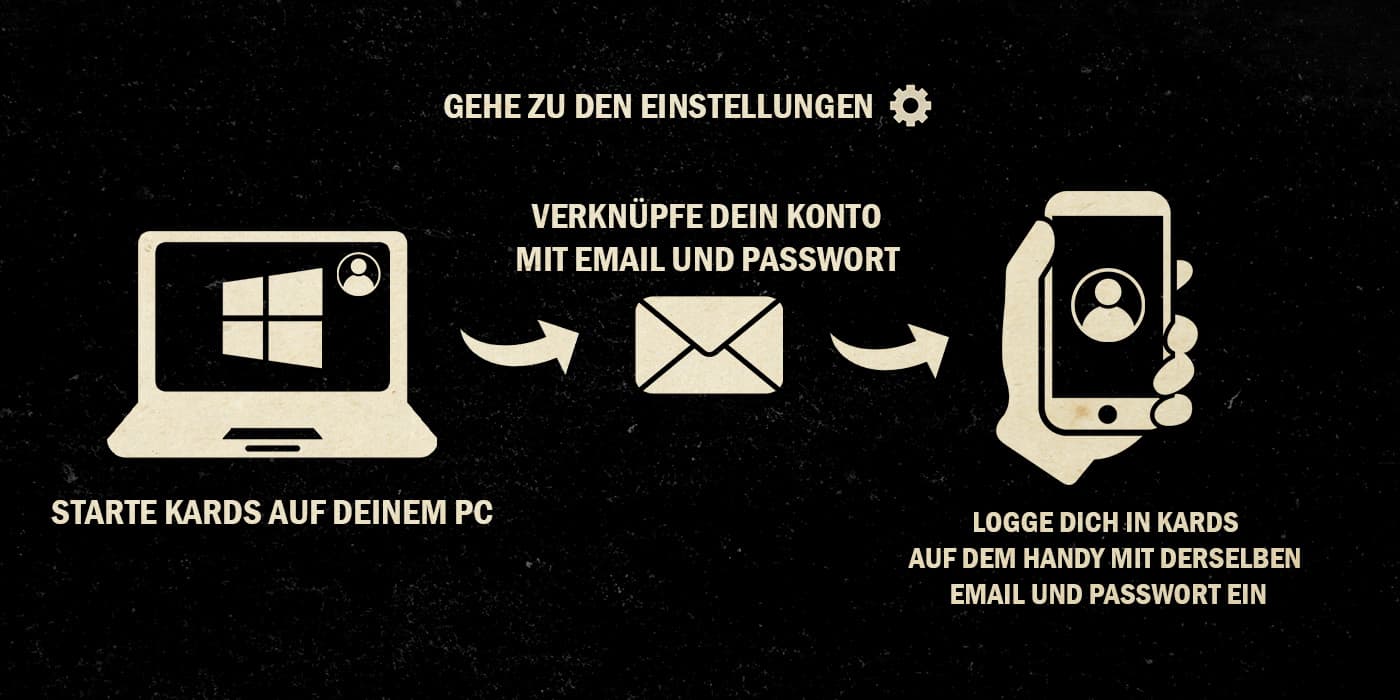 c. Gebe die gleiche E-Mail-Adresse und das gleiche Passwort ein, die du zum Erstellen deines KARDS-Kontos auf dem PC verwendet hast.