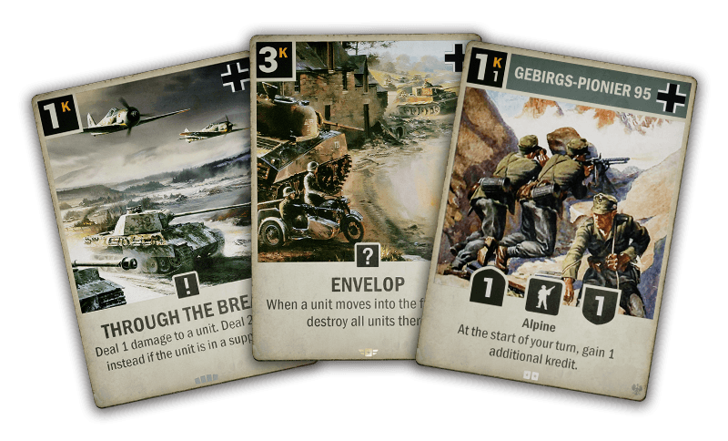 La nouvelle carte Elite des Allemands est Enveloppement, une contre-mesure au coût de 3 Krédits. Cette contre-mesure détruit toutes les unités situées en première ligne lorsque l'ennemi y déplace une unité. Très puissant !