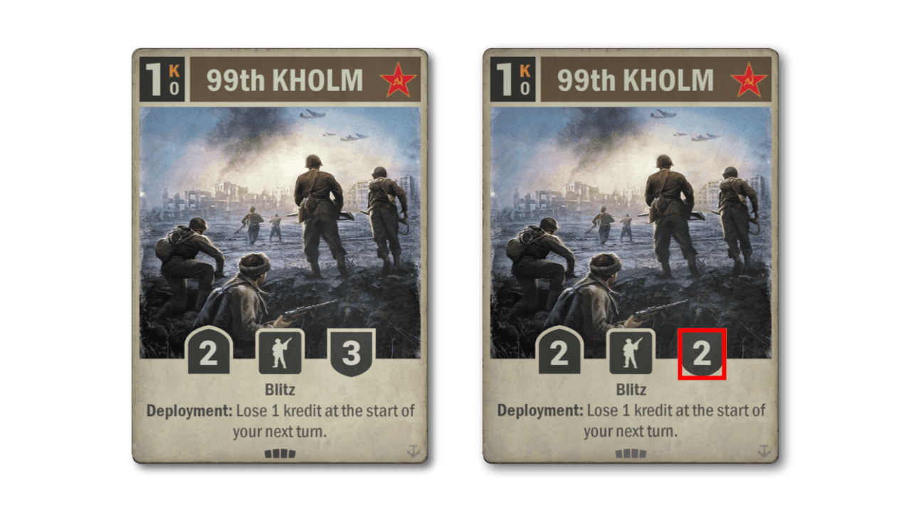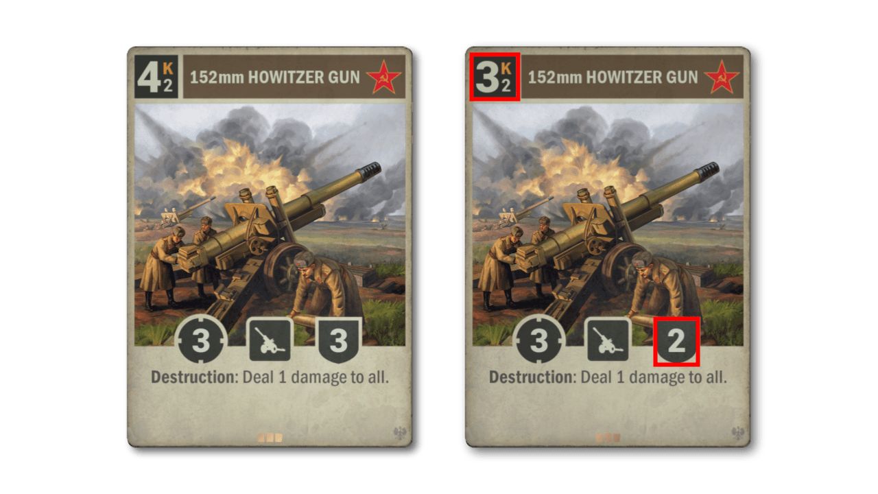 Questa è un'altra modifica apportata specificamente perché questa carta entrerà a far parte del pool permanente. Non ha mai visto molto gioco, ma tocca diverse strategie che i sovietici hanno impiegato di volta in volta, vale a dire l'artiglieria e l'auto-danno. Le statistiche più aggressive che l'unità ora ha certamente la rendono una proposta più attraente la prossima volta che questi archetipi rifaranno capolino.