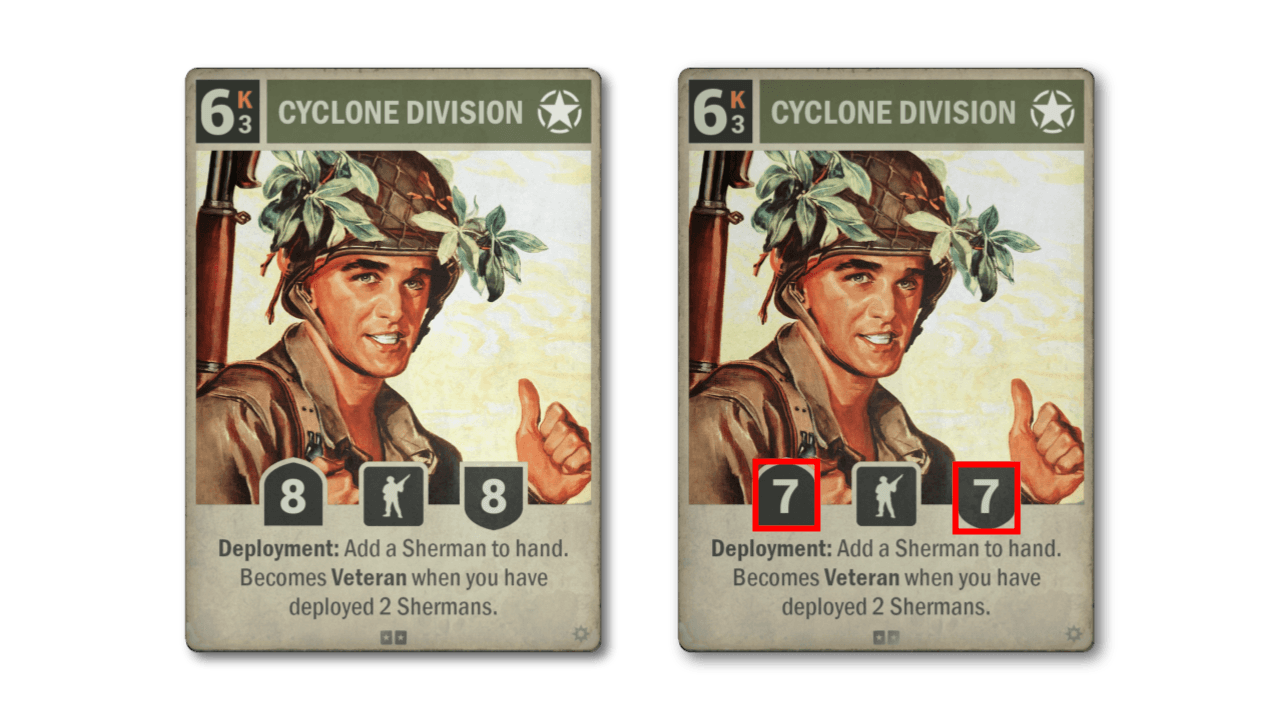 Sicuramente vi state chiedento cosa ci faccia la DIVISIONE CYCLON nel segmento dei nerf, visto che non vede gioco ad alto livello da diversi mesi. Bene, si tratta di ciò che è stato menzionato sopra per quanto riguarda le modifiche al sistema di rotazione. Le carte che diventeranno una parte permanente del pool attivo non possono essere troppo oppressive e, nell'ambiente giusto e con il giusto supporto, temiamo che questo ciclone possa spazzare via tutto. Quindi stiamo preventivamente abbassando le sue statistiche a 7/7 (anche nella versione Veterana).