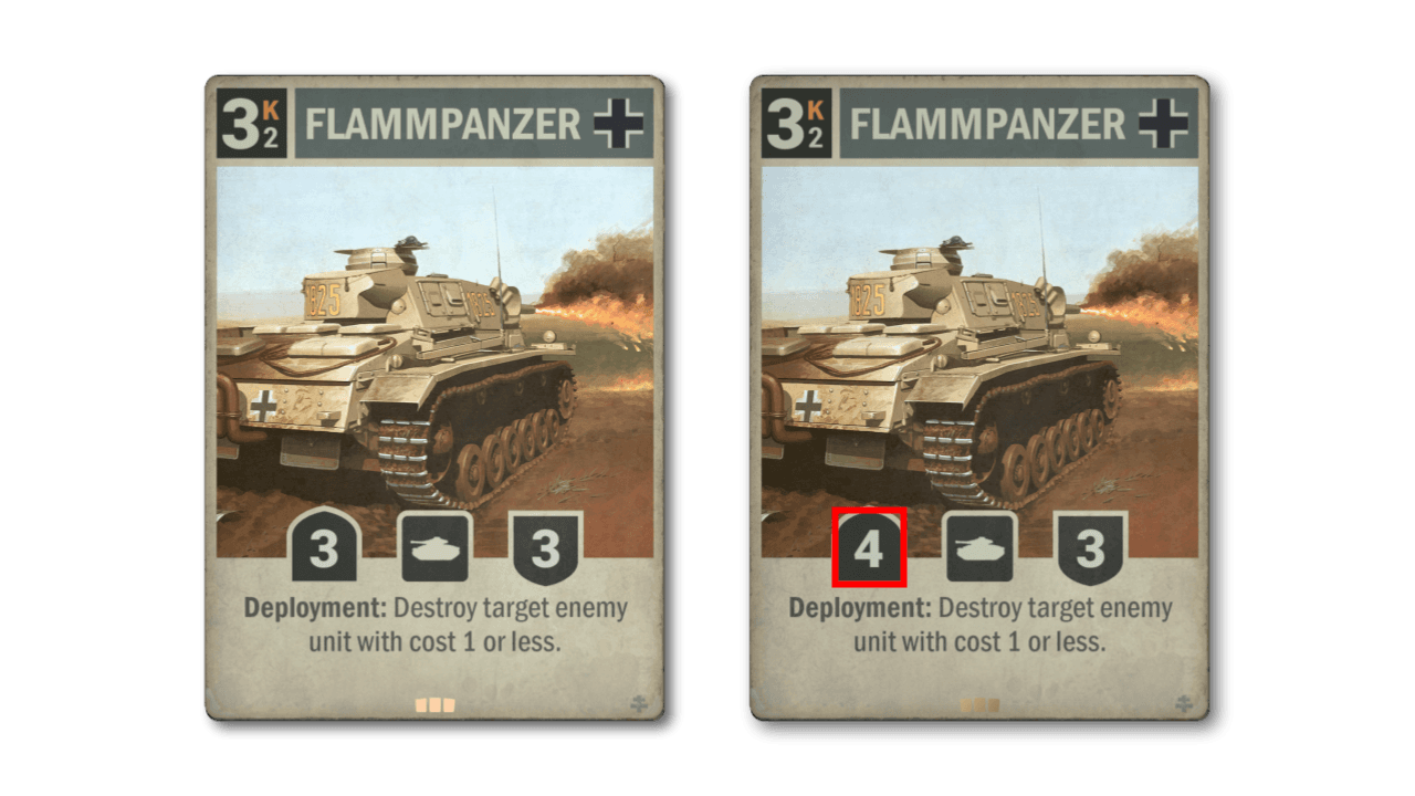 Il vecchio FLAMMPANZER era la rovina dei mazzi aggressivi in passato, anche dopo aver mangiato un nerf. I suoi giorni migliori sono passati da tempo, ma vogliamo riaccendere la vecchia fiamma. Ora che ha un attacco di 4, può anche rientrare nella strategia che premia avere unità con 4 attacco, rendendola molto più utile in generale. Chissà se i giocatori riprenderanno in mano la torcia e guideranno ancora una volta questa vecchia gloria.