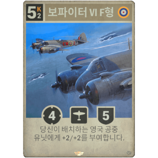 당신이 배치하는 영국 공중 유닛에게 +2/+2를 부여합니다.
