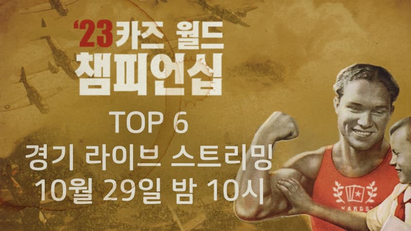 10월 29일, 카즈 트위치 채널 에서 TOP 6의 경기가 생중계됩니다. 대회의 모든 흥미진진한 순간을 함께 해주시고, 스트림 경품 행사에 참여하여 상품 획득 기회를 잡으십시오!