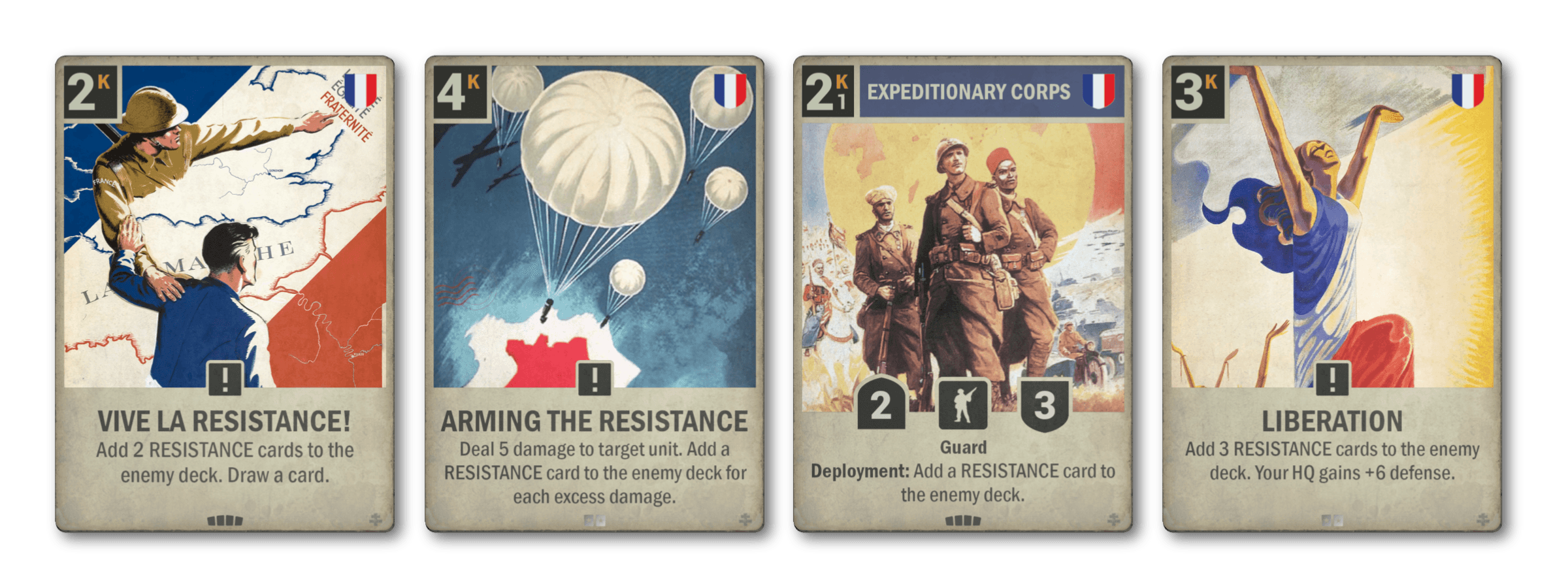 To support this evolution, France receives three brand-new cards in Homefront: RESISTANCE COUNCIL, 1er BCP, and 27e DIA.