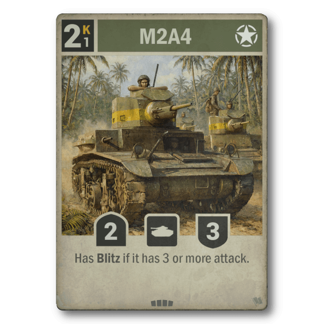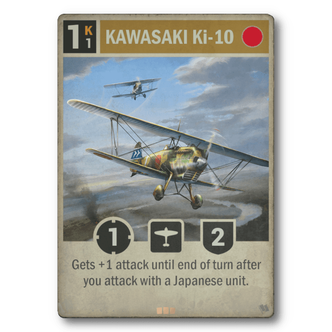 • Effect: Gets +1 attack until end of turn after you attack with a Japanese unit.