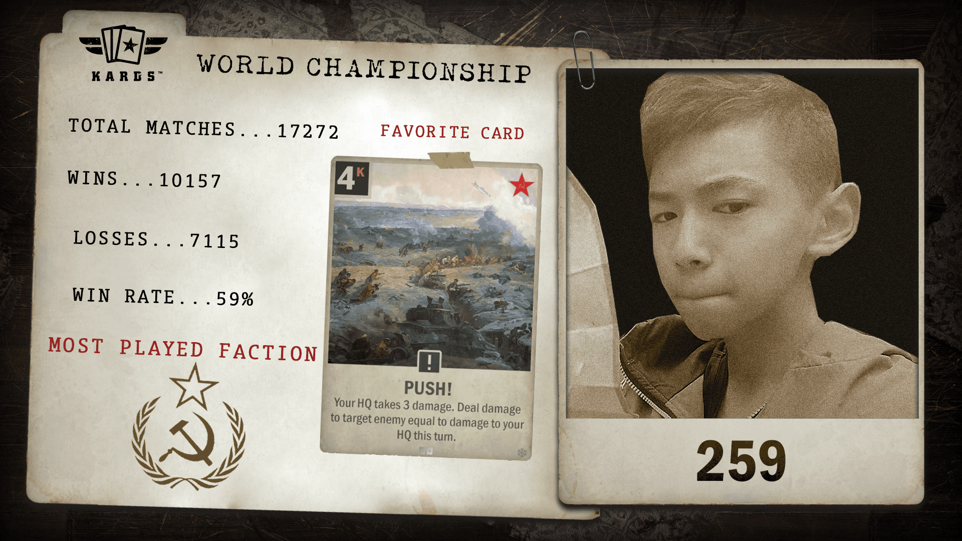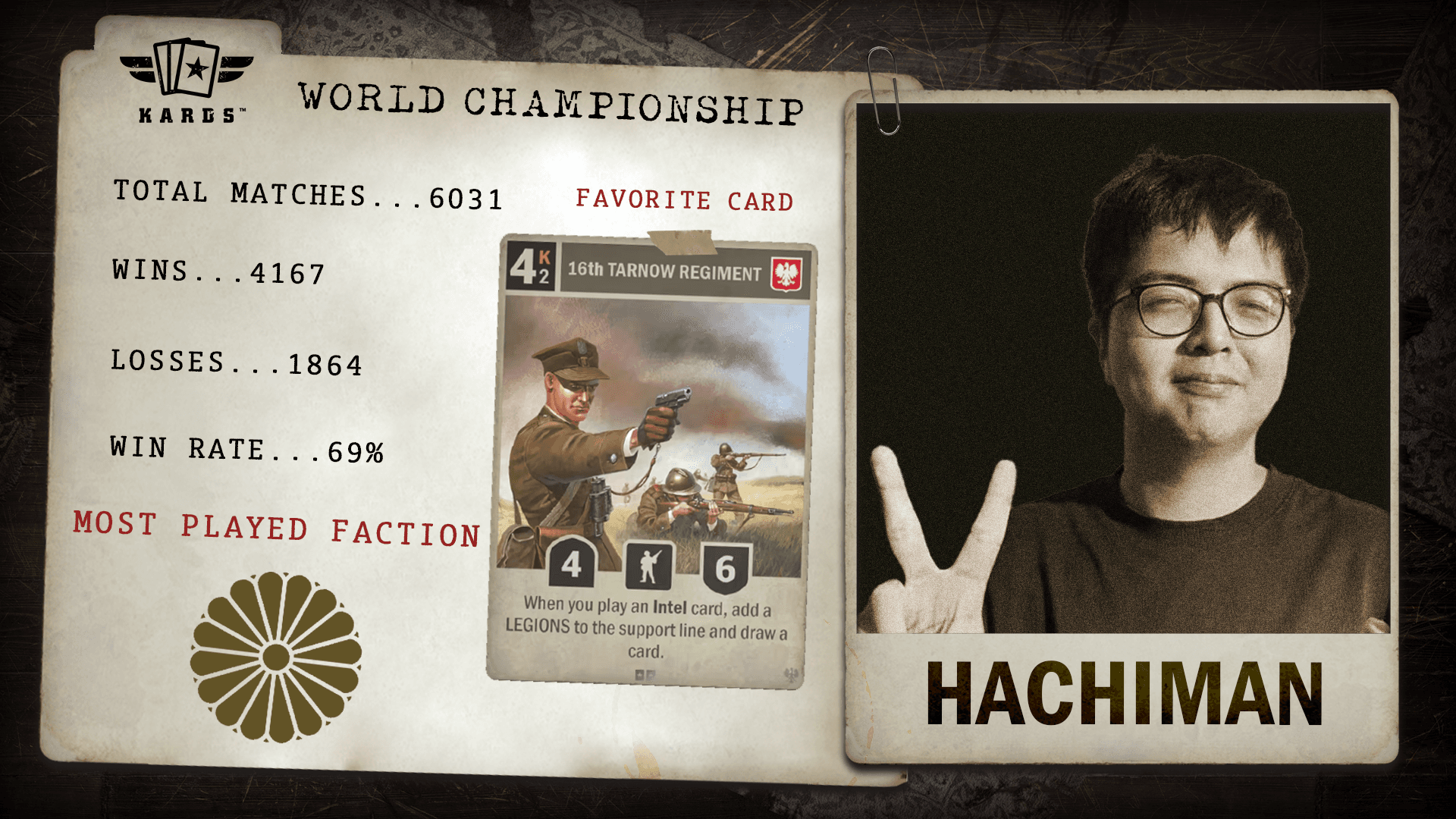 Prawdziwa gwiazda, 失其本心八幡 (HachimanLostHeart), dołączył do KARDS w maju 2025 roku i w ciągu zaledwie kilku miesięcy błyskawicznie awansował do mistrzostw świata. Z wyjątkowym wskaźnikiem zwycięstw na poziomie 69,1% w ponad 6000 meczach, jego błyskawiczny awans jest jednym z najszybszych w historii rywalizacji esportowej KARDS.