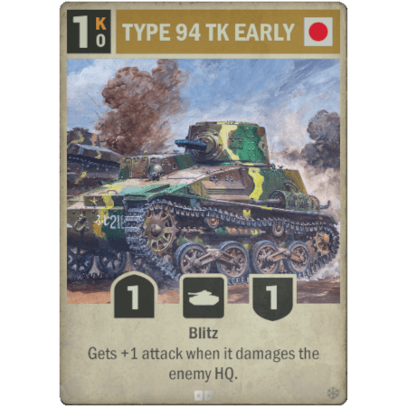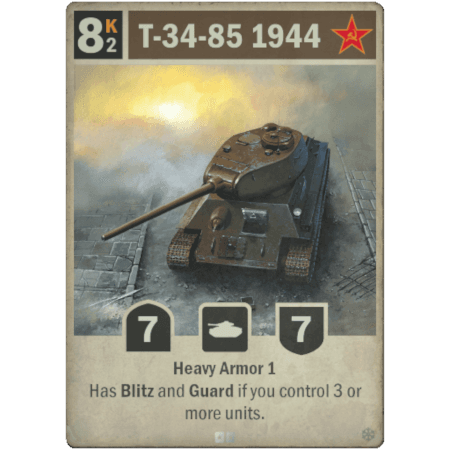 The 64. PANZERGRENADIER is a German Infantry unit of Limited rarity with Blitz and the Veteran ability. It has 2 attack, 3 defense, costs 2 kredits to play and 1 kredit to operate. It becomes Veteran if it starts your turn in the frontline. When this unit becomes Veteran, you gain 3 additional kredits. It has 3 attack and 3 defense in its Veteran form.