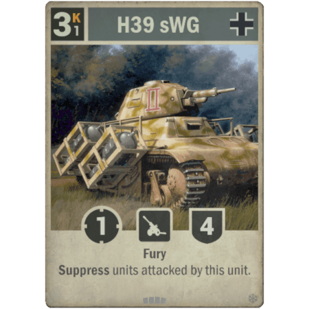 The M10A1 is a US tank of Limited rarity. It costs 3 kredits to play, 1 kredit to operate, has 4 attack and 2 defense. It has the deployment effect to Suppress a target enemy unit.