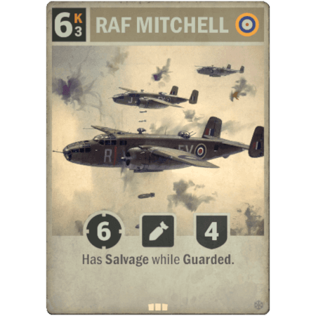 The HALIFAX B.Mk I is a British Bomber of Special rarity. It costs 8 kredits to play and 3 kredits to operate. It has 5 attack, 4 defense, and has the ability that bombers you deploy (including itself) deal their attack in damage to a random enemy.