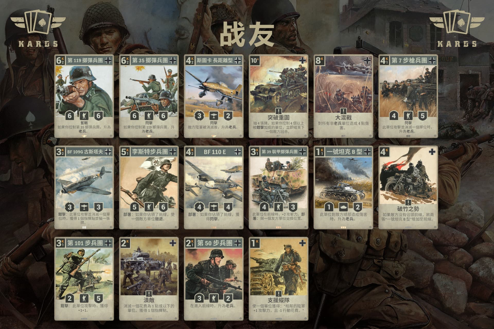 我們很高興地宣布戰友擴展包上線,該擴展包已於6月27日在所有戰場上推出。此次大型擴展適用於所有平台上的玩家,並在KARDS開啟了一個令人興奮的新時代。