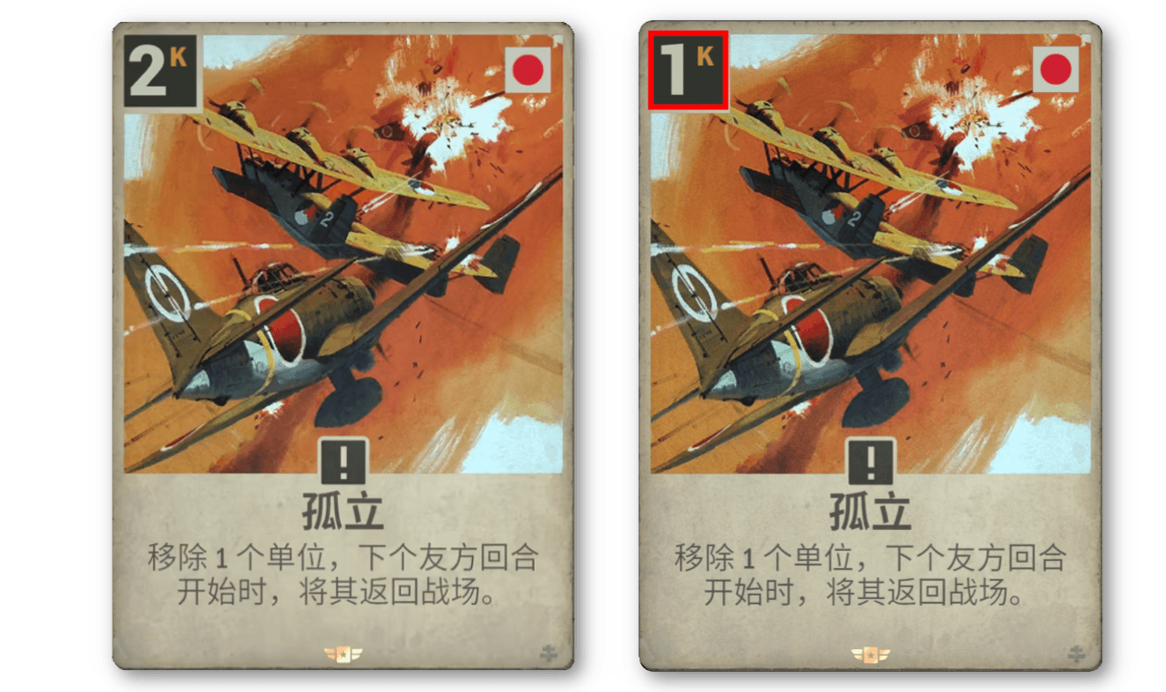 上文京都联队的片段有提到,即使是暂时移除单位,效果也十分强力,所以我们要立刻通过加强这张小解牌来产生自相矛盾的行为。否则这就不是对味的 1939 补丁了。暂时移除单位的效果目前看起来或许并不起眼,但没准在不久的未来,会变得更有价值。谁知道呢?