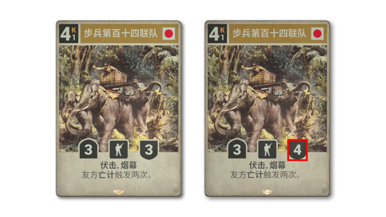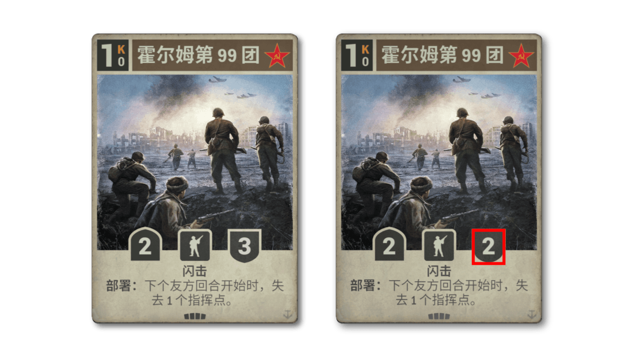 新:每回合,友方部署第一个单位时,使其获得 +1+1。