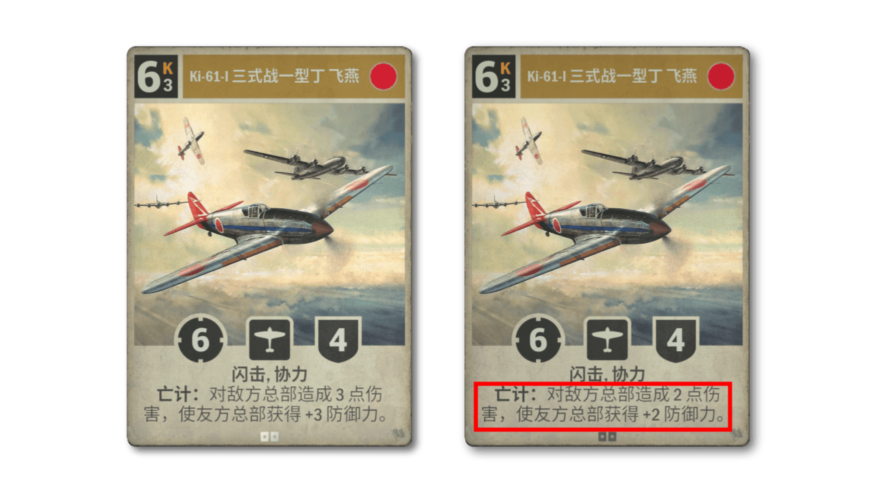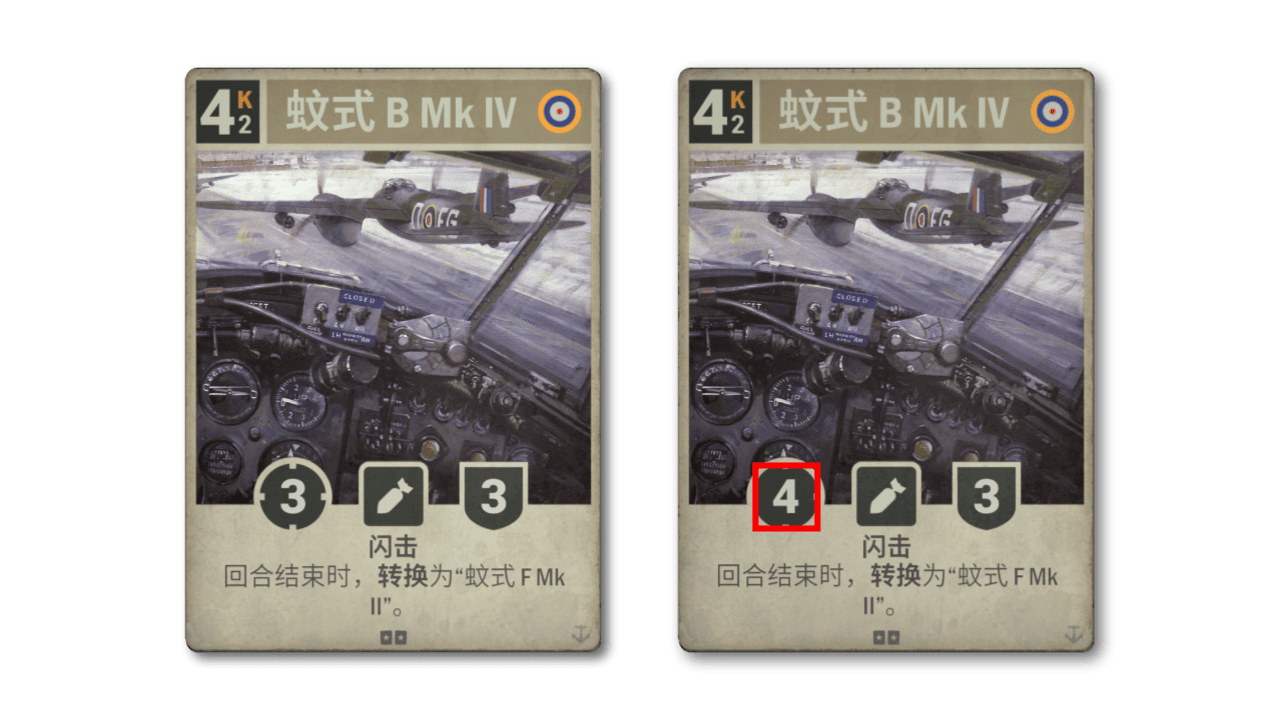 尽管英国在过去一年有所改善,但仍是最不受欢迎的主国。少数真正可行的英国卡组基本都是各种米色团。我们觉得英国的战略还有进一步改进的空间,因此对蚊式轰炸机进行了补强。战斗机衍生牌保持不变,但轰炸机将装备更强劲的火力,使其更具吸引力。
